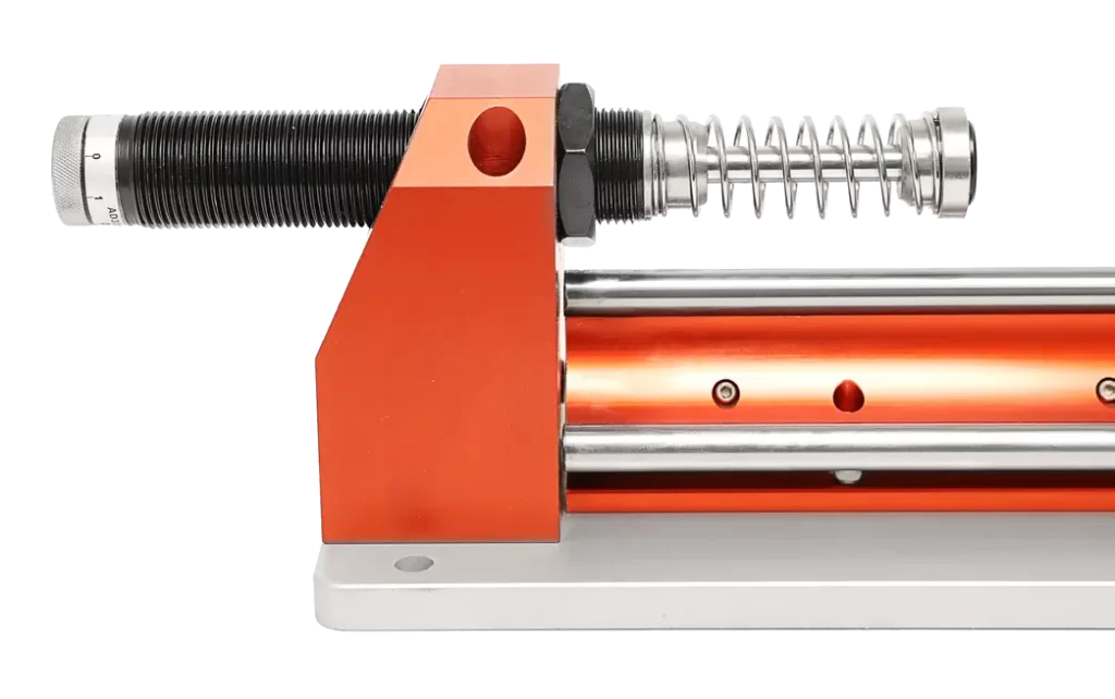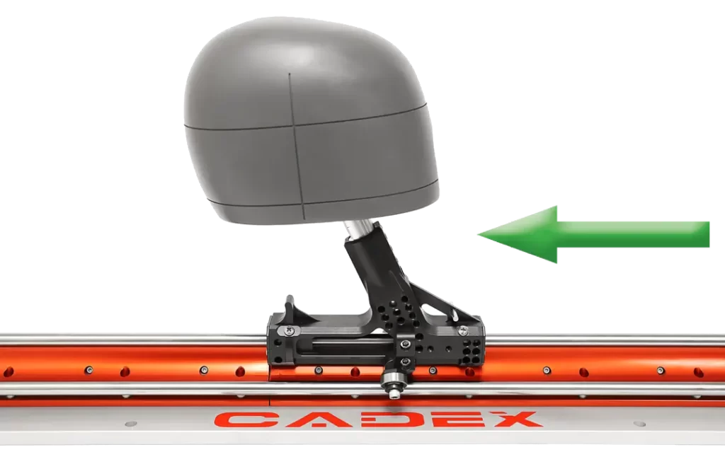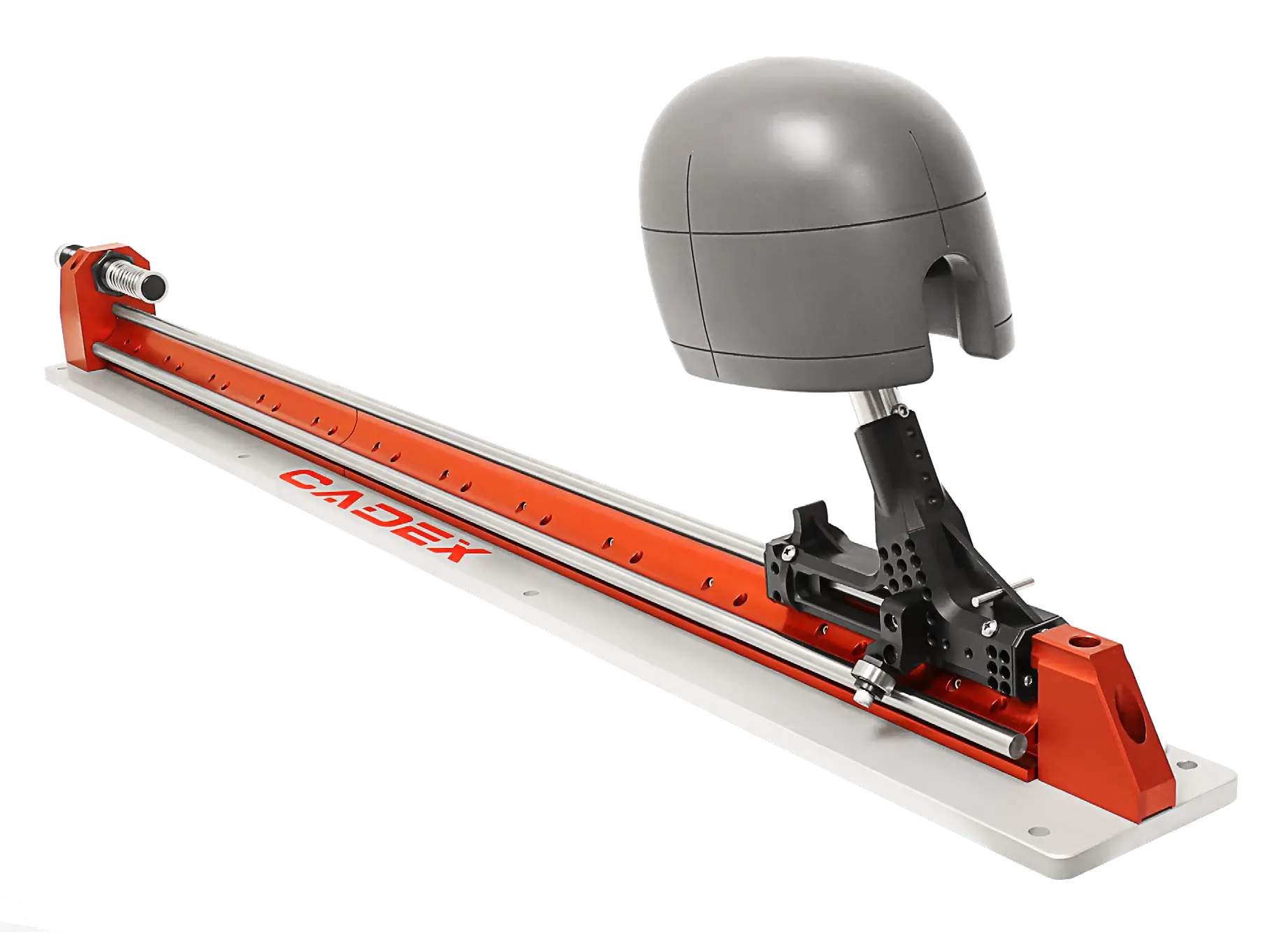 The Cadex horizontal impact attenuation rail system is designed to offer low friction resistance during impact testing. Used to perform the ballistic impact attenuation test according to NIJ 0106.01 standard and others.